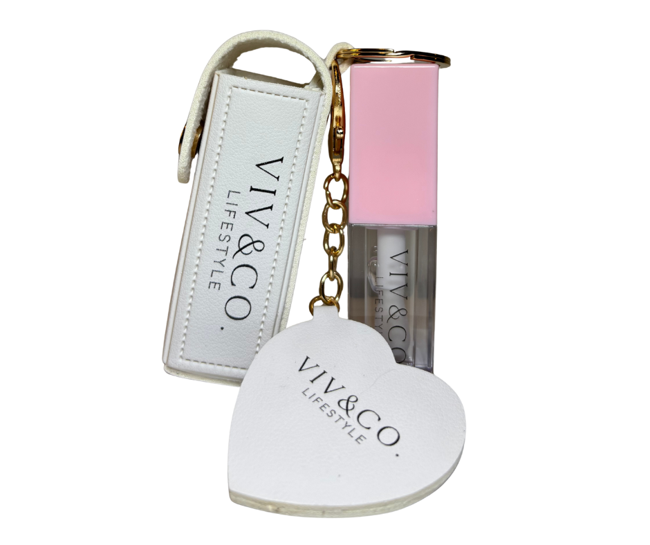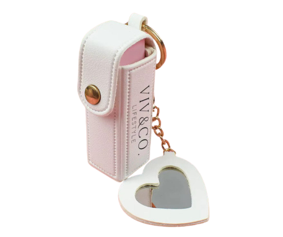 Say hello to glossy hydration wherever you go with the VIV & CO OTG – a must-have accessory for every modern beauty lover. This ultra-cute set features a lip oil tube tucked into a luxe vegan leather pouch with a gold-tone snap closure. Attached is a matching keyring and an aesthetic heart-shaped mirror charm for quick, glam touch-ups.